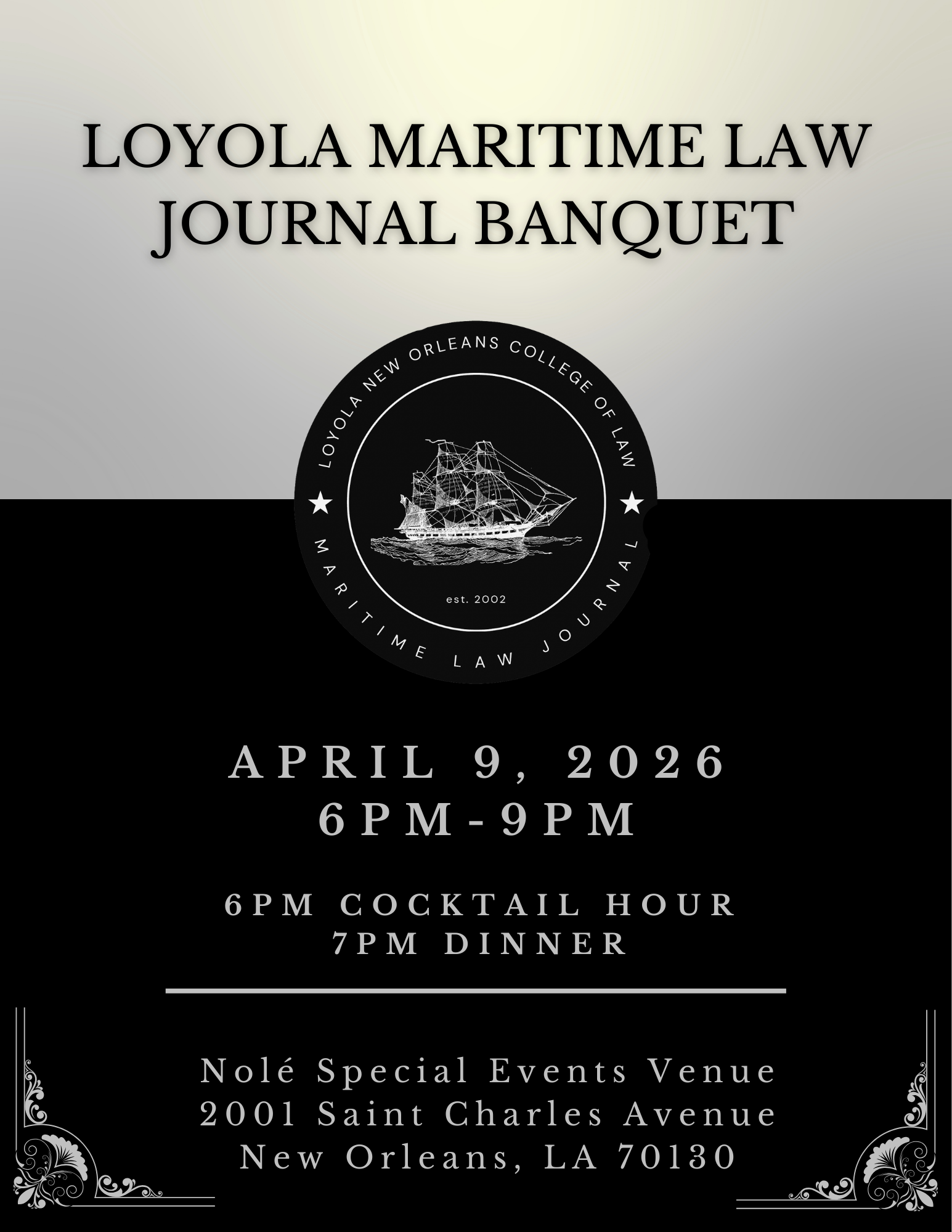 The Loyola Maritime Law Journal will celebrate its accomplishments throughout the 2025-2026 academic year, including the publication of our 25th volume. We invite you to join us in the celebration!